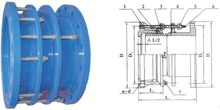 伸縮接頭系列產品屬金屬制品、其有較高的抗拉和抗壓強度,軟密封性能優越,安裝拆卸方便等功能,被廣泛應用于電力、冶金、化工、給排水和污水處理等行業,主要作用于水泵于閥門和管道之間的連接。雙法蘭限位伸縮接頭在管道運行中有一定的多向位移作用,對管道在運行中由于熱漲冷縮、地殼下陷和受力產生著重要的伸縮補償作用,因此,伸縮接頭可以緩解管道運行中的盲板推力,對管道起到一定的保護作用,特別是對管道的安裝和維修提供了極大的便利。但是,在水泵出口處和管道轉角處,在無固定支墩、無限位支墩和定向限為支墩支架的滑動管道連接中應采用傳力接頭限位伸縮器(伸縮節)和防拉脫限位橡膠接頭,因為傳力接頭通過傳力螺栓(即全絲螺栓)能把啟泵時的盲板推力傳導到泵和管道各部位,避免推力集中于管道轉角處或泵的近端,發生沖擊力損傷設備。